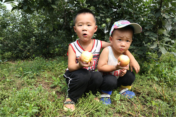 在果园里,面对镜头,兄弟俩大口大口地吃着自家果园里饱满多汁,鲜甜可口的苹果。