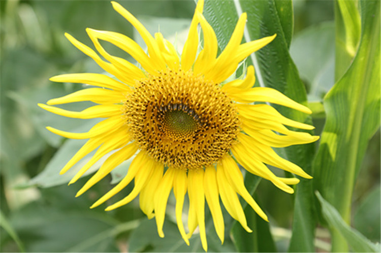 在炽热的阳光下,一棵棵向日葵挺拔地站立着,一片片金黄色的花瓣抖擞着,沉甸甸的花盘预示着秋的丰收。