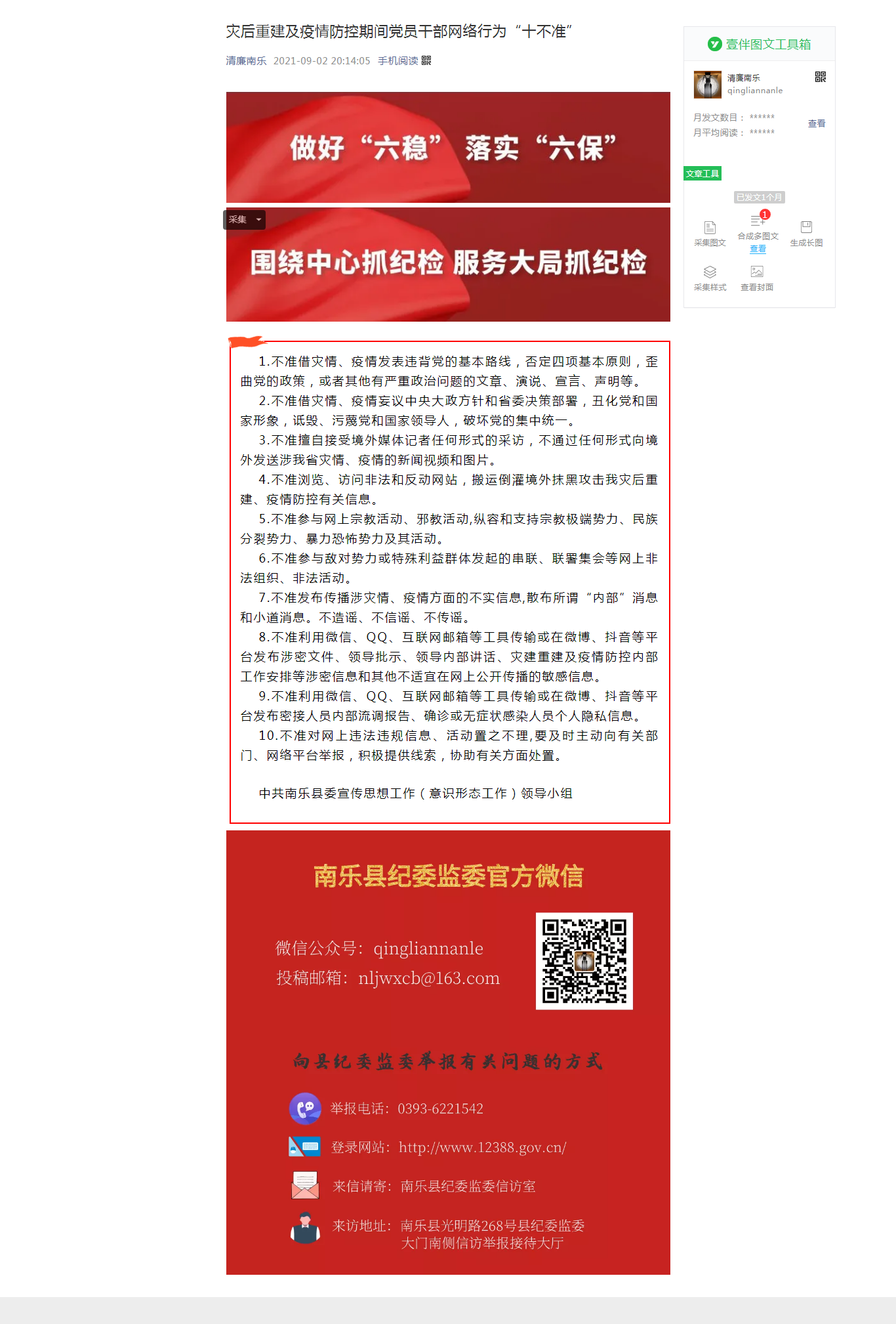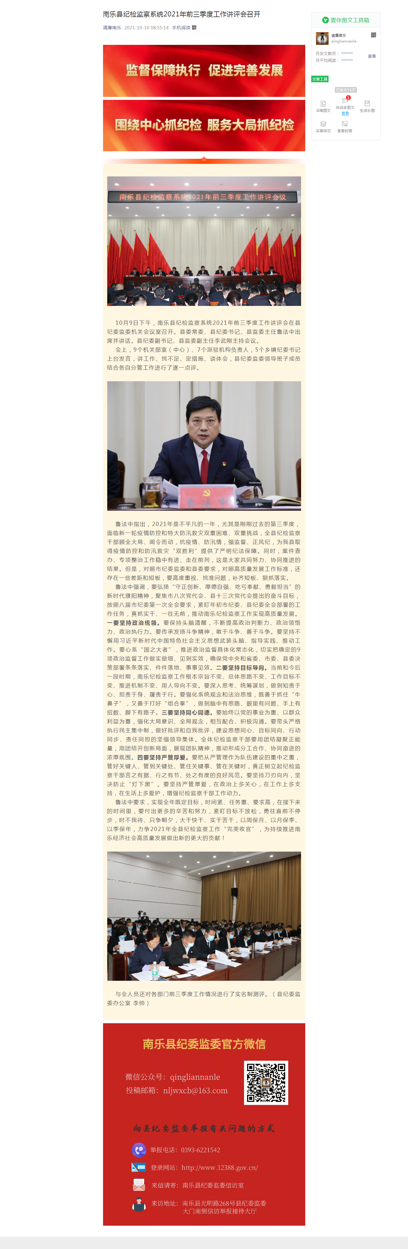 新媒体发布阵地:“清廉南乐”微信公众号: