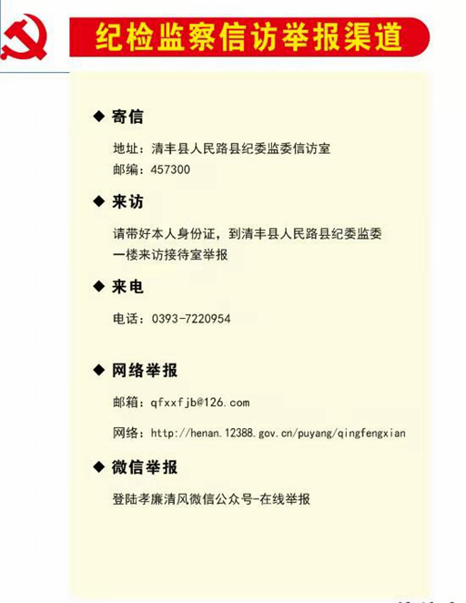 网络: http://henan.12388.gov.cn/puyang/qingfengxian