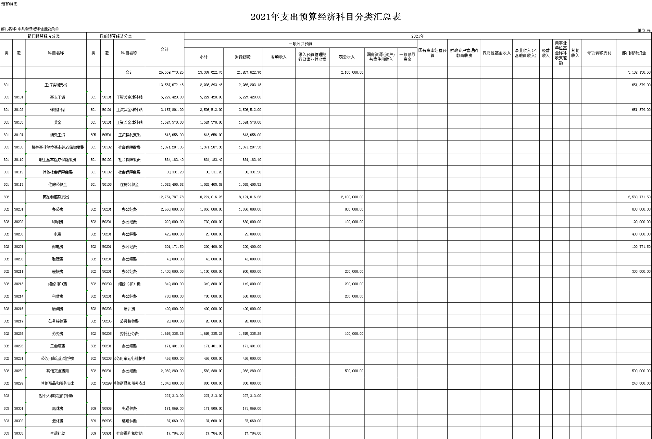附件:中共滑县纪律检查委员会2021年度部门预算表