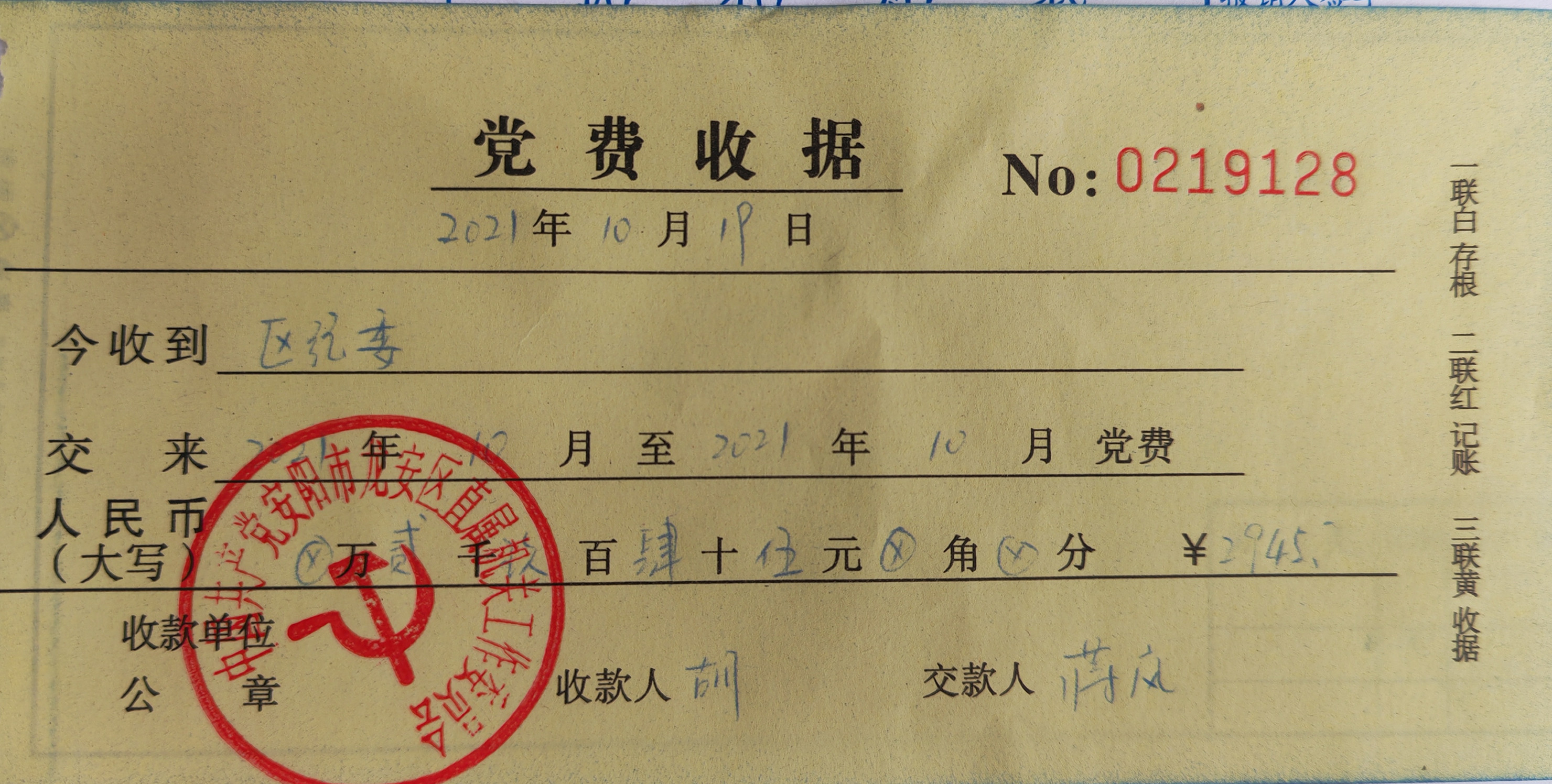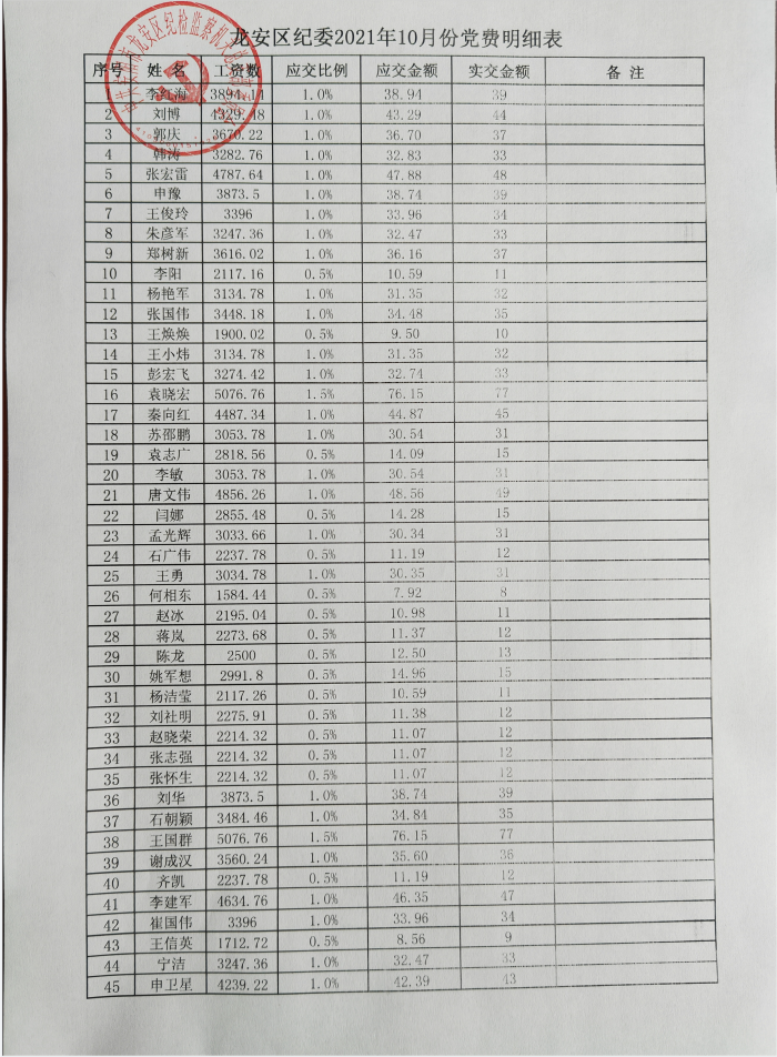 党务公开|龙安区纪委2021年10月党费明细