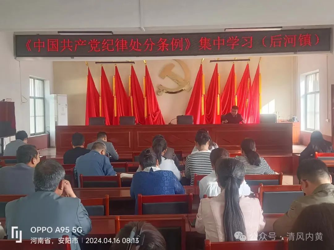 为进一步提升广大党员干部和公职人员党纪法规意识,教育引导大家坚定理想信念、树牢纪法意识、强化自我约束、筑牢反腐倡廉底线。4月16日,后河镇纪委组织机关党员干部集中学习《中国共产党纪律处分条例》。