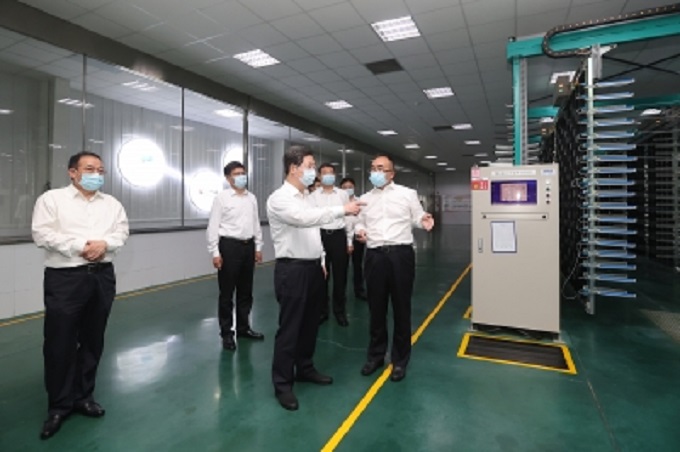 8月2日,省委书记楼阳生到河南光远新材料股份有限公司,调研产业转型升级、科技创新等情况。本报记者董亮蔡迅翔摄