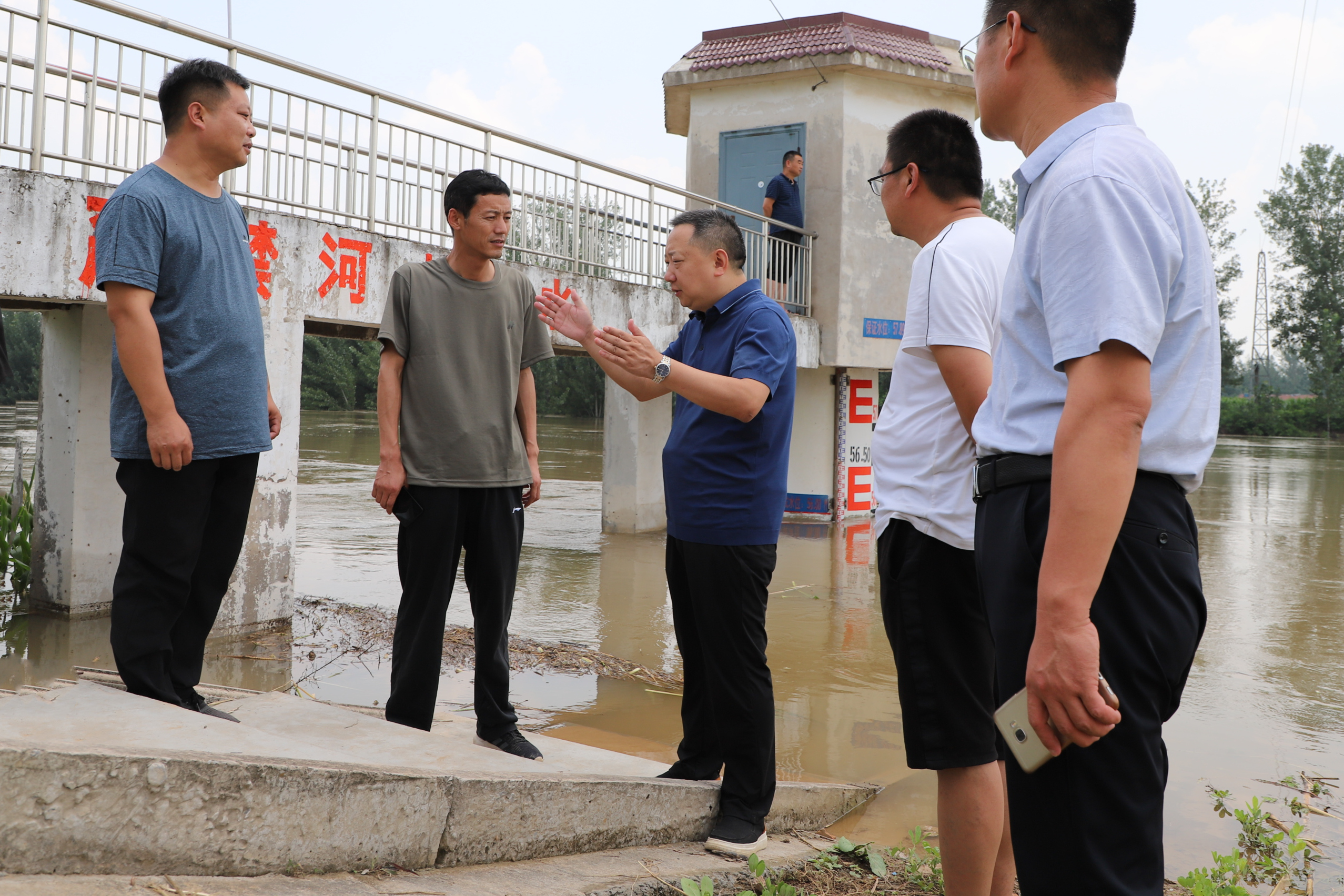 在五陵镇水文站,石磊来到卫河大堤现场查看卫河水情。在详细询问了工作人员上游来水量、洪峰过境时间、水位走势等情况后,石磊指出:当前防汛救灾形势严峻、任务繁重,要科学研判汛情,准确预测趋势,为防汛决策提供科学依据;要牢固树立以人民为中心的理念,时刻保持战备状态,全力做好防汛救灾工作,尽最大努力把汛情可能导致的损失降到最低。