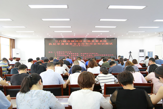 为扎实推进“补短板建机制强能力见成效”问题清单整改落实,进一步提升纪检监察干部执纪审查调查安全工作水平,7月26日,陕州区纪委监委以考代训、以考促学,组织开展执纪审查调查安全应知应会知识测试。13个乡(镇)纪委书记,区纪委监委机关、各派驻纪检监察组共计130余名纪检监察干部参加测试。