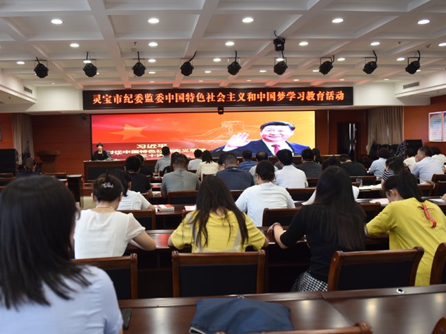 7月8日,灵宝市纪委监委举行中国特色社会主义和中国梦学习教育活动,该市纪委监委机关及派驻纪检监察组全体同志参加学习。