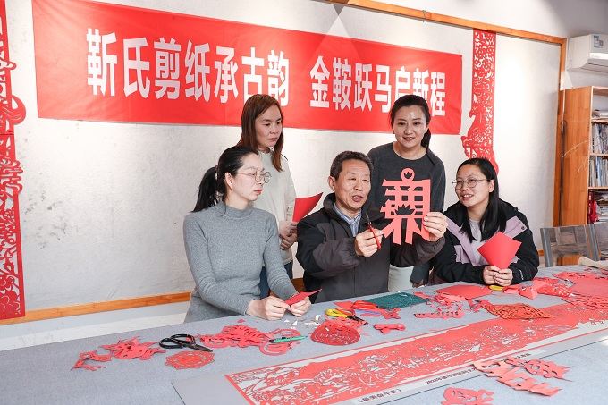 林州市纪委监委创新廉洁文化传播形式,以红纸为卷、剪刀为笔,裁刻“廉”字,把廉洁文化融入非遗剪纸创作,让廉洁教育更接地气、更具人气。图为该市纪委监委组织开展廉洁主题剪纸活动。(林州市纪委监委 秦阳 摄)