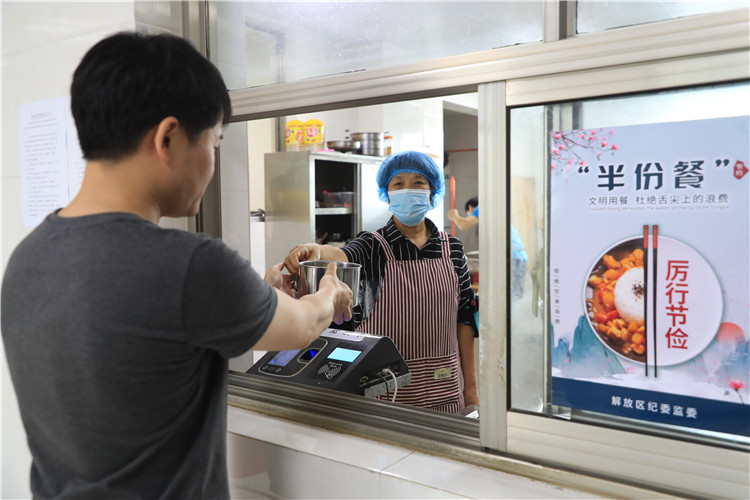 组织开展“杜绝餐桌浪费、践行‘光盘’行动”系列活动,推行“半份餐”制度,让制止餐饮浪费,培养节约好习惯成为生活新时尚。(焦作市解放区纪委监委马虹光摄)