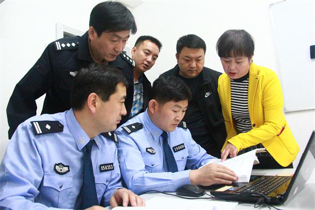 三门峡市湖滨区纪检监察干部与公安民警共同研判黑恶势力及其背后保护伞问题线索。