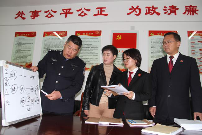 三门峡市湖滨区纪检监察组与公安、法院、检察院组成联合评查组分析涉黑涉恶案件。