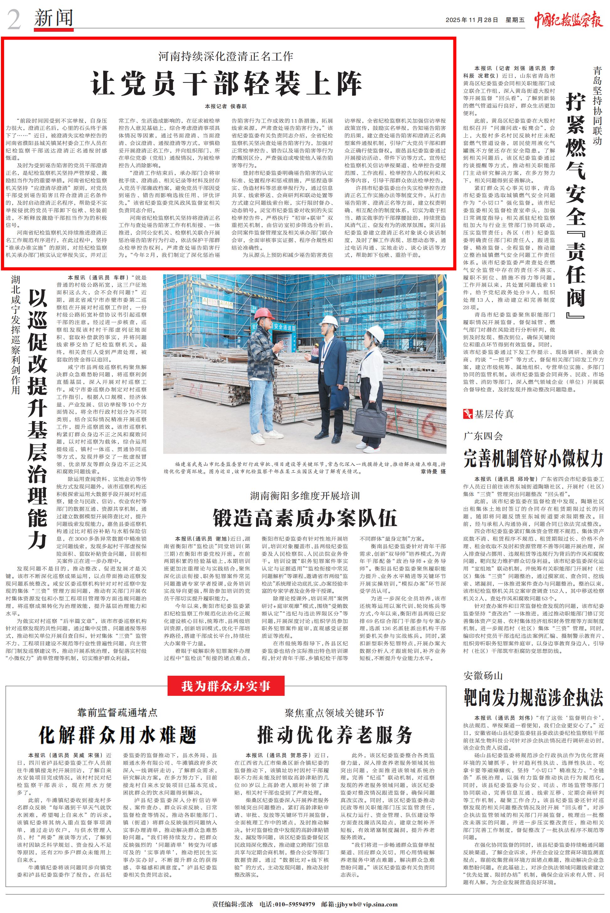 许昌市纪委监委出台失实检举控告澄清正名工作实施办法等制度文件,从打击诬告陷害、澄清正名等方面,建立权责明确、相互配合的制度体系,切实为敢于担当、踏实做事的干部撑腰鼓劲,持续营造风清气正、奋发有为的浓厚氛围。栾川县纪委监委建立澄清正名对象谈心谈话制度,及时了解工作表现、思想动态等,通过电话沟通、实地走访、谈心谈话等方式,帮助卸下包袱、重拾干劲。(侯春跃)