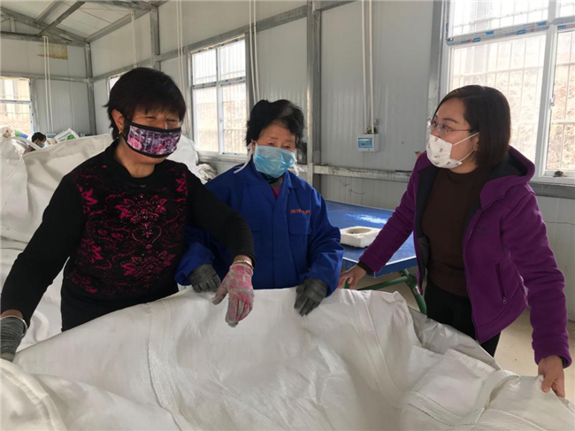 “疫情防控关键期,复工复产不能松,扶贫项目更得跟得上。不用急,有困难,我们积极协调一起来解决。”王丽萍当时看到情况后表示。随后,经向宫前乡党委政府汇报反馈,乡里通过多渠道筹措,为塑编厂送去了口罩、消毒液、体温计、手套等防疫物资,并安排卫生院专人定时为厂房消毒。同时,为解决务工人员短缺问题,从周边村组织了20名贫困群众,解决了用工问题。