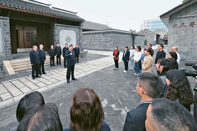 2024年10月17日至18日,中共中央总书记、国家主席、中央军委主席习近平在安徽考察。这是17日下午,习近平在安庆桐城市六尺巷考察时,同当地居民和游客亲切交流。新华社记者申宏/摄