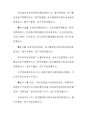 第六十九条 对信仰宗教的党员,应当加强思想教育,要求