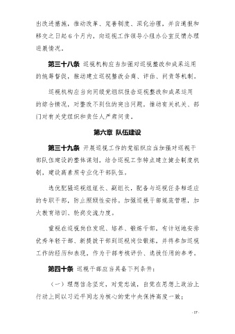 第三十九条 开展巡视工作的党组织应当加强对巡视干