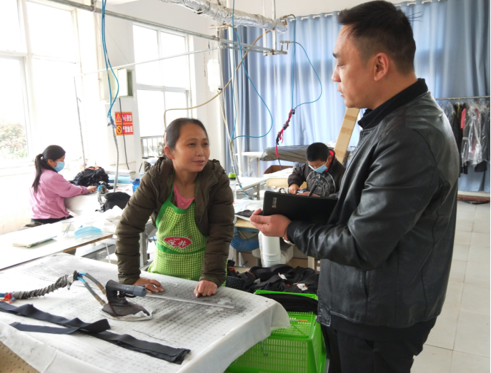 “陈大姐,3月份的工资到账了吗?家里还有啥困难没有?”该区五女店镇纪委副书记周建涛来到扶贫车间,向陈春霞了解情况。