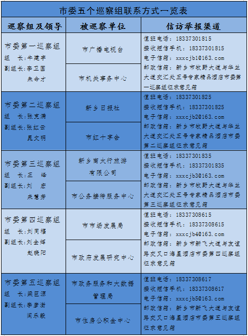 近日,按照市委统一部署,市委五个巡察组分别进驻市政务服务和大数据管理局、新乡日报社、市政府发展研究中心、市机关事务中心、市广播电视台、市市场发展局、市住房公积金中心、市红十字会、市公务接待服务中心、新乡南太行旅游有限公司开展常规巡察。