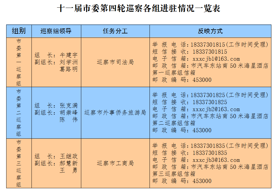 按照市委统一部署,11月22日至23日,市委3个巡察组分别进驻市司法局、市外事侨务旅游局、市工商局开展专项巡察,并采取“一拖二”方式,“下沉一级”巡察延津县榆林乡、获嘉县冯庄镇、卫辉市唐庄镇。