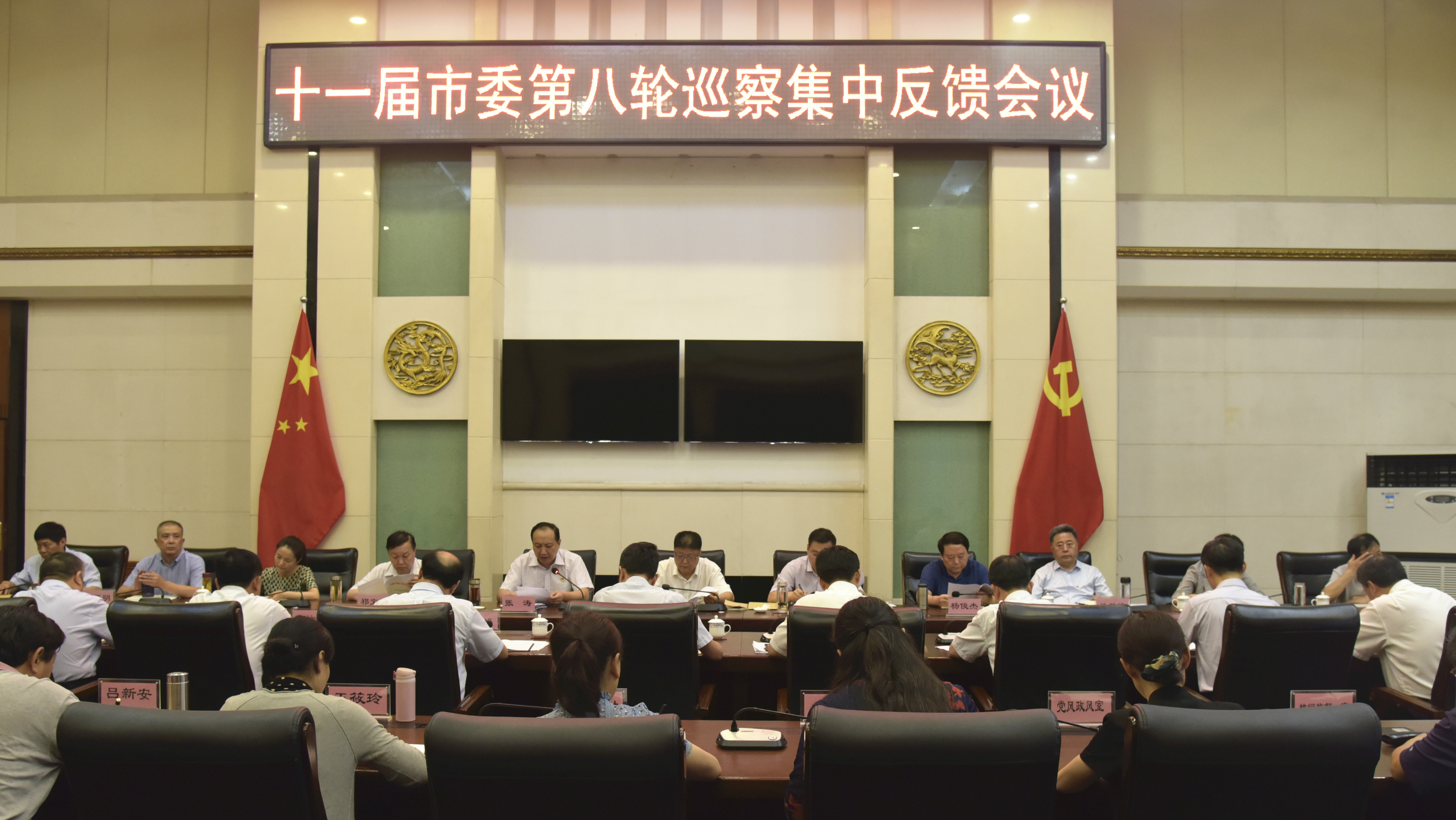 8月26日,我市召开十一届市委第八轮巡察集中反馈会议,向十一届市委第八轮巡察的9家单位党组织主要负责同志集中反馈巡察意见。市领导马锁文、李跃勇、张涛、杨俊杰、祁文华出席会议。会议由市委常委、组织部长、市委巡察工作领导小组副组长张涛主持。