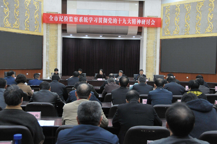 杨慧中强调,学习贯彻党的十九大精神,必须学懂、弄通、做实。全市纪检监察系统要按照中央、省、市的部署要求,坚持把学习十九大精神作为首要政治任务,坚持把党的政治建设摆在首位,坚持驰而不息改进作风,坚持以人民为中心执纪监督,坚持“老虎”“苍蝇”一起打,浓厚不敢腐的氛围,坚持制度治党扎紧不能腐的笼子,坚持纪律教育强化不想腐的自觉,坚持从严从实建设让党放心、人民信赖的纪检监察队伍,把学习十九大精神成果转化为开展纪检监察工作的强大动力,推动全面从严治党向纵深发展。
