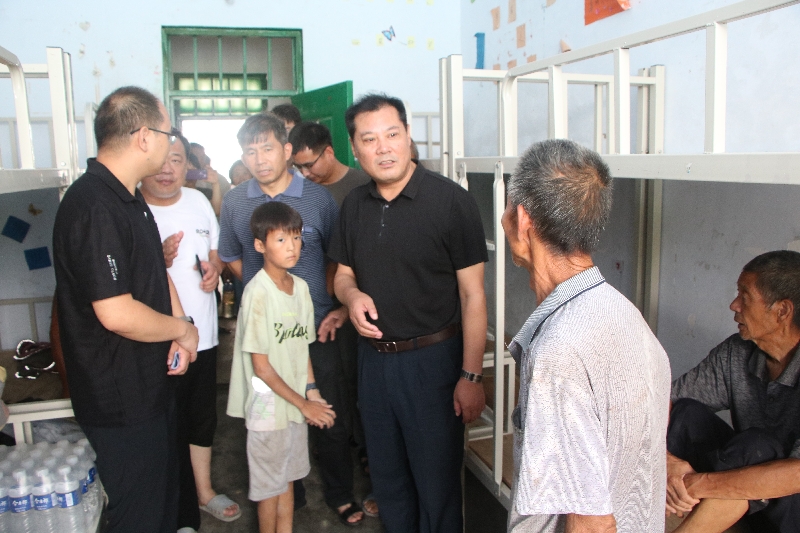 7月22日,驻市发改委纪检监察组组长郭玉明一行来到扶沟县吕潭乡吉唐村转移群众临时安置点——吉鸿昌中学,看望慰问受灾群众。(驻市发改委纪检监察组)