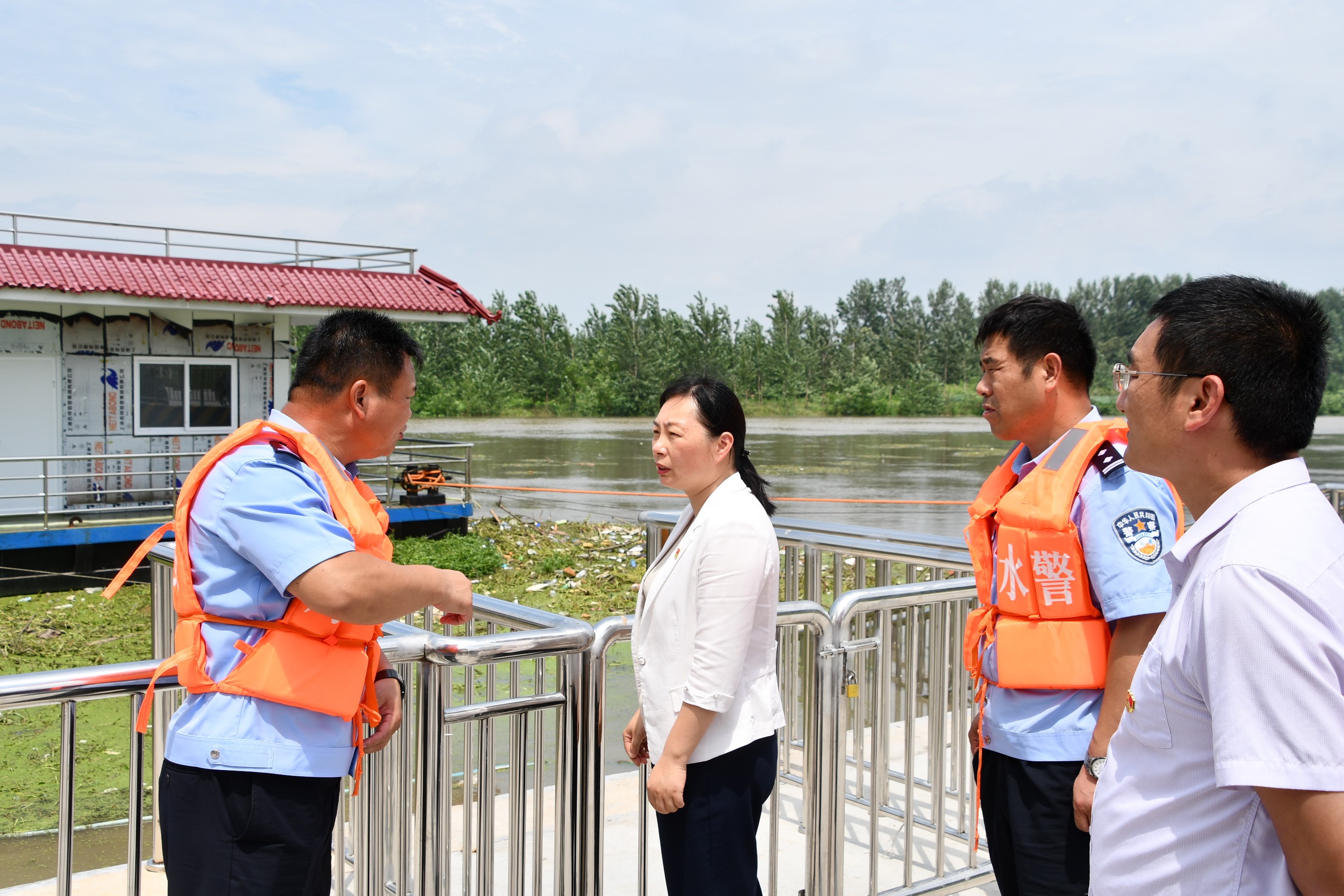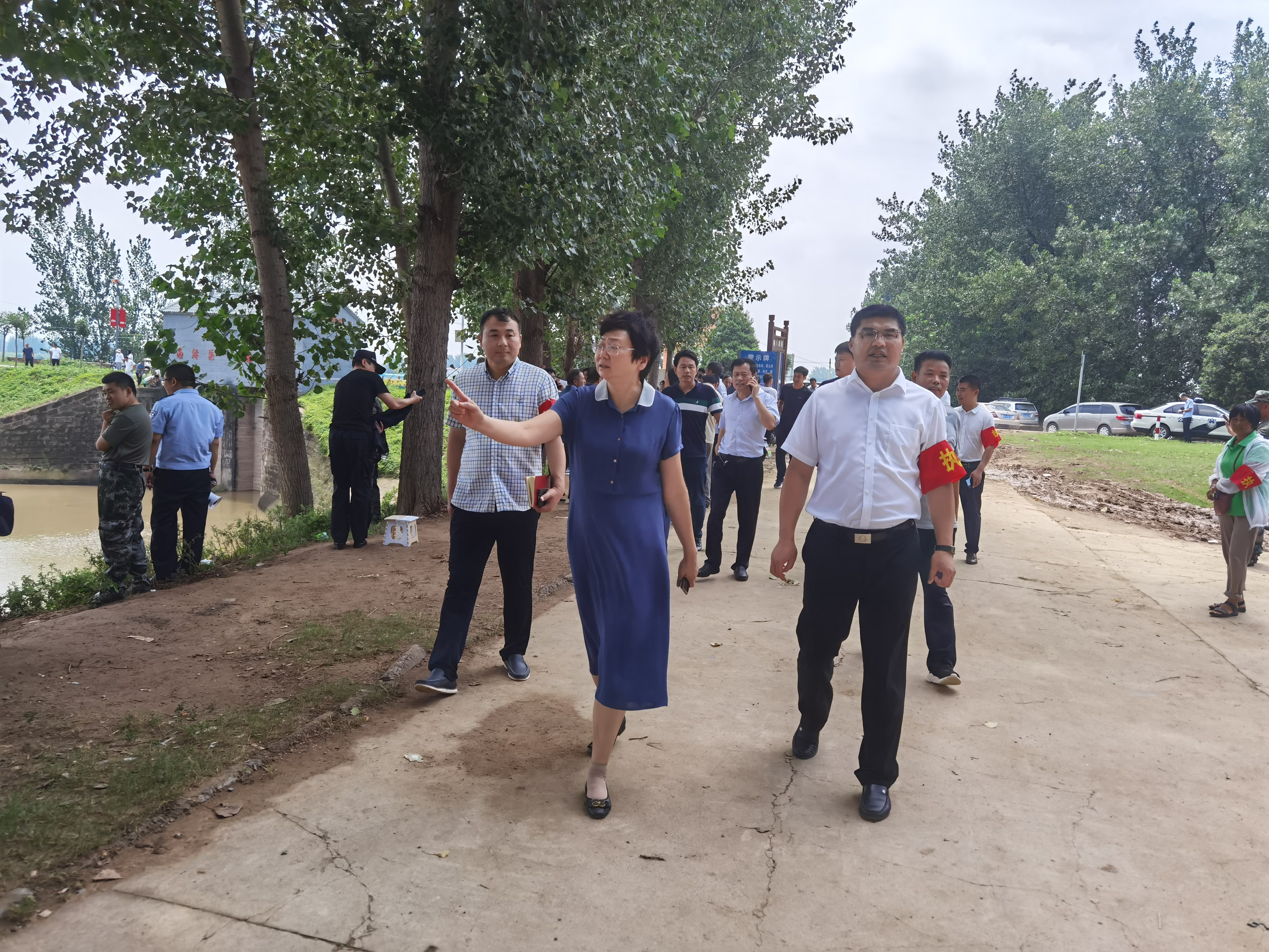 7月22日,市直纪检监察工委书记刘君宜带领人员实地督导杨楼村贾鲁河水域防汛工作,察看水情水位,督促防汛措施落实。(市直纪检监察工委)