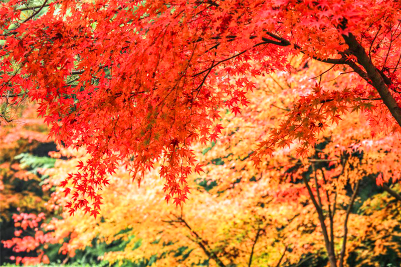 一朝秋暮露成霜,数树深红出浅黄。深秋时节,被晚霜染红的枫叶犹如燃烧的火焰,与闪着金光的黄叶共同为日渐萧条的秋日增添了一笔绚烂热烈的色彩。(洛阳市涧西区纪委监委 段万卿 摄)