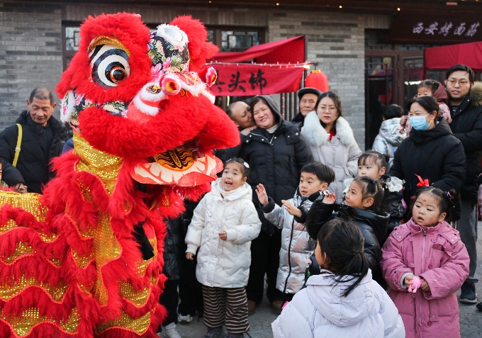 跳跃、翻滚、跌扑、搔痒……伴随着节奏欢快的锣鼓声,精彩的舞狮表演惟妙惟肖,颇具观赏性和趣味性。小观众们兴奋不已,纷纷上前伸出手来,想摸一摸那可爱的“狮子”,感受这新春的喜悦。(焦作市山阳区纪委监委 刘伟峰 摄)