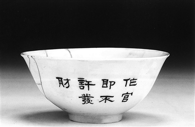 在国家博物馆的馆藏文物中有一件细瓷碗,上面写着“作官即不许发财”7个字,这是吉鸿昌烈士的父亲吉筠亭留给他的遗训。