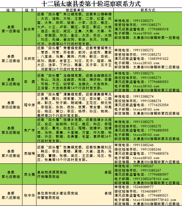 据悉,此次巡察从2020年7月10日开始,7月13日完成进驻,8月21日结束。十二届太康县委第十轮巡察工作联系方式如下: